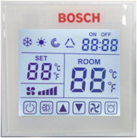 此線控器采用超薄設計,厚度僅有13mm,機身尺寸86*86毫米.外觀采用白色亞克力,超薄純平設計,一體化外殼前后蓋之間無縫隙裝配設計,時尚豪華。采用超大觸摸式屏幕液晶顯示,操作方便.白色背光選擇,給人舒適的視覺享受。并有按鍵鎖定及解鎖功能,可以防止他人誤操作。背光的屏幕保護,更加節能。產品內置功能強大,內置多功能組合自由設定;具有制冷、制熱、風速選擇、時鐘設定等多種功能,并具備掉電保持功能。加直流電機驅動輸出。